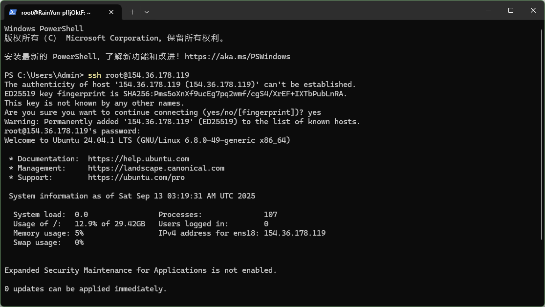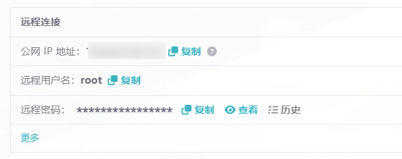 先从控制面板获取到服务器信息,使用终端连接服务器